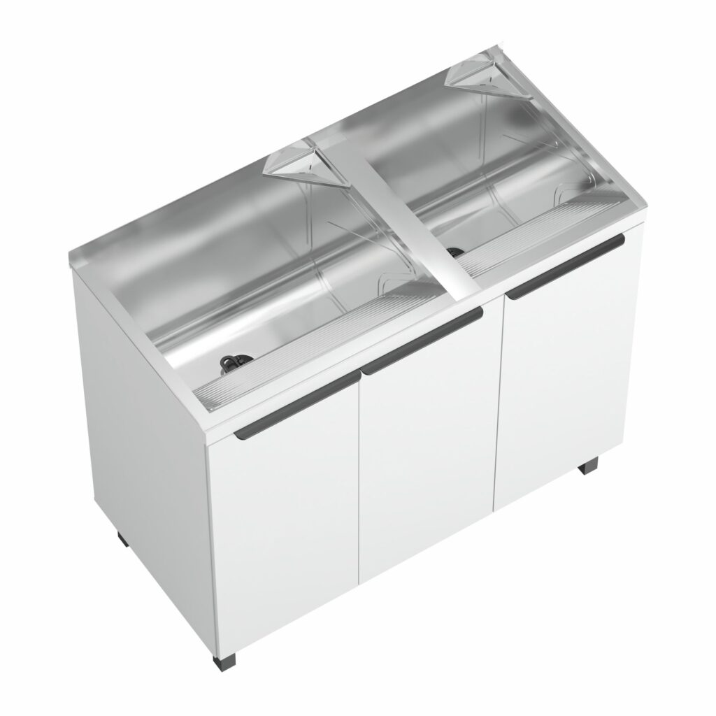 Versatilidade sob medida para seu projetoAqui na GhelPlus, oferecemos soluções que se moldam a diferentes necessidades, começando pela Linha Mini, perfeita para vãos estreitos. Nela, o tanque em inox de 32 litros é acoplado a uma estrutura em MDP com prateleiras estratégicas e nicho para baldes, enquanto o puxador slim garante um toque moderno ao design.