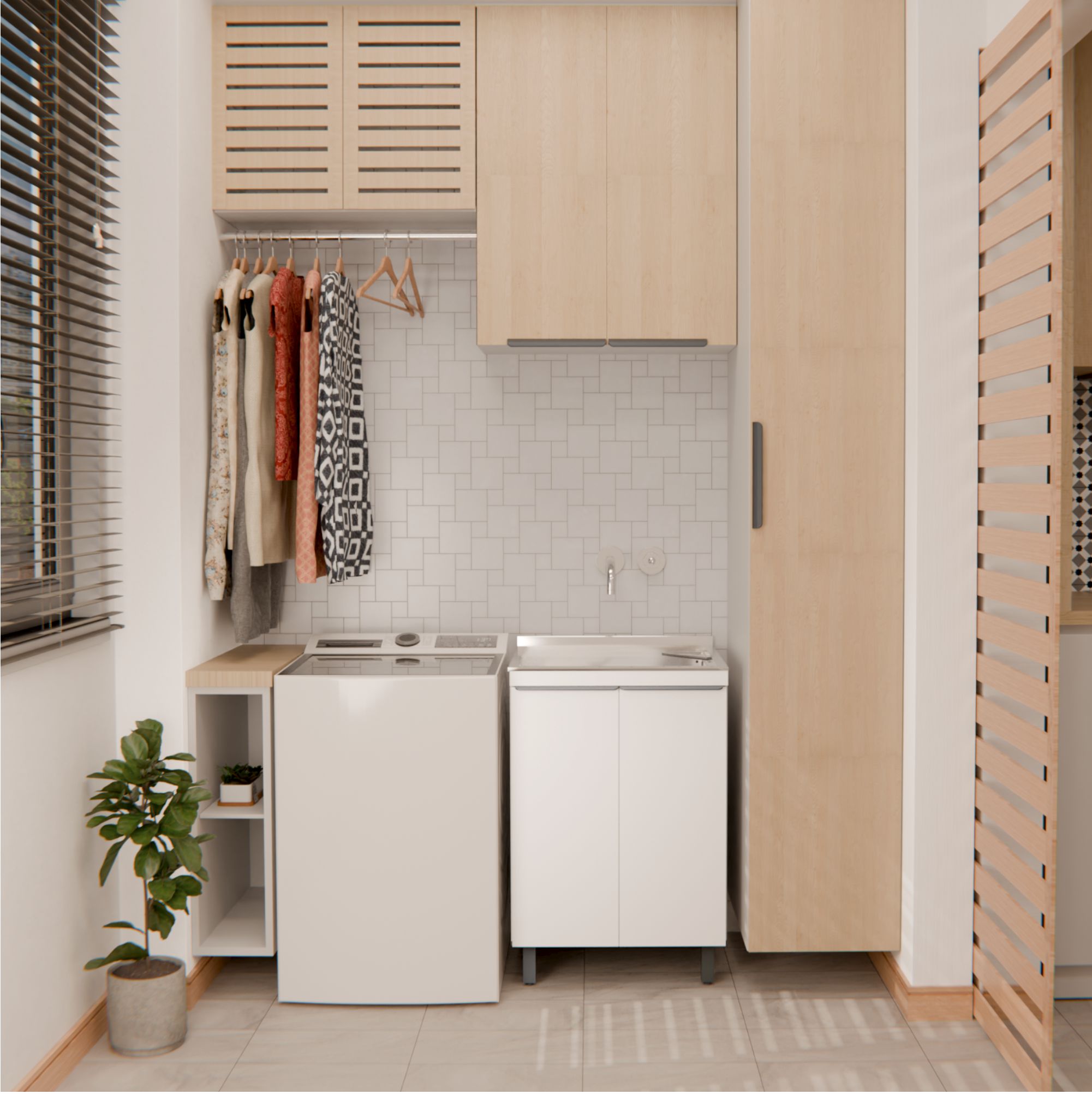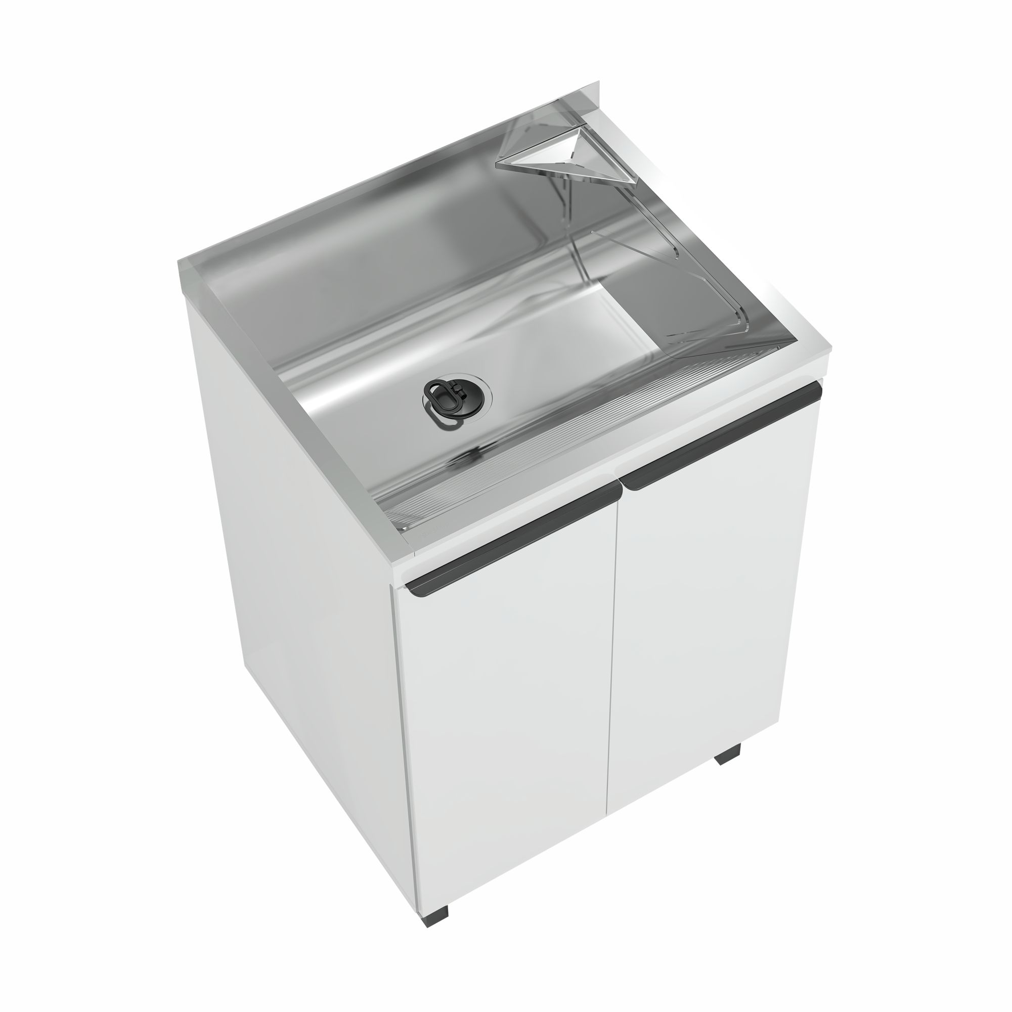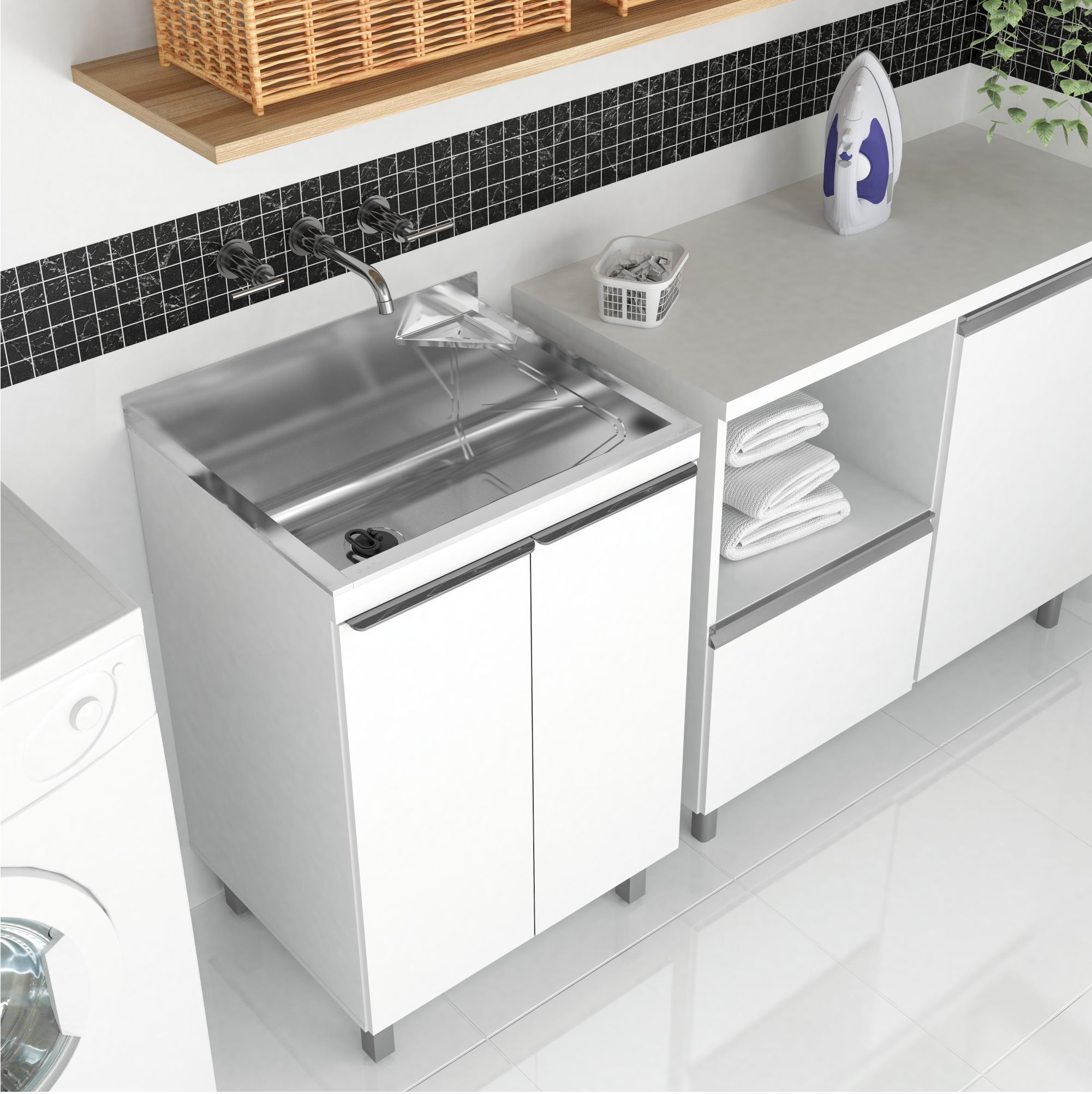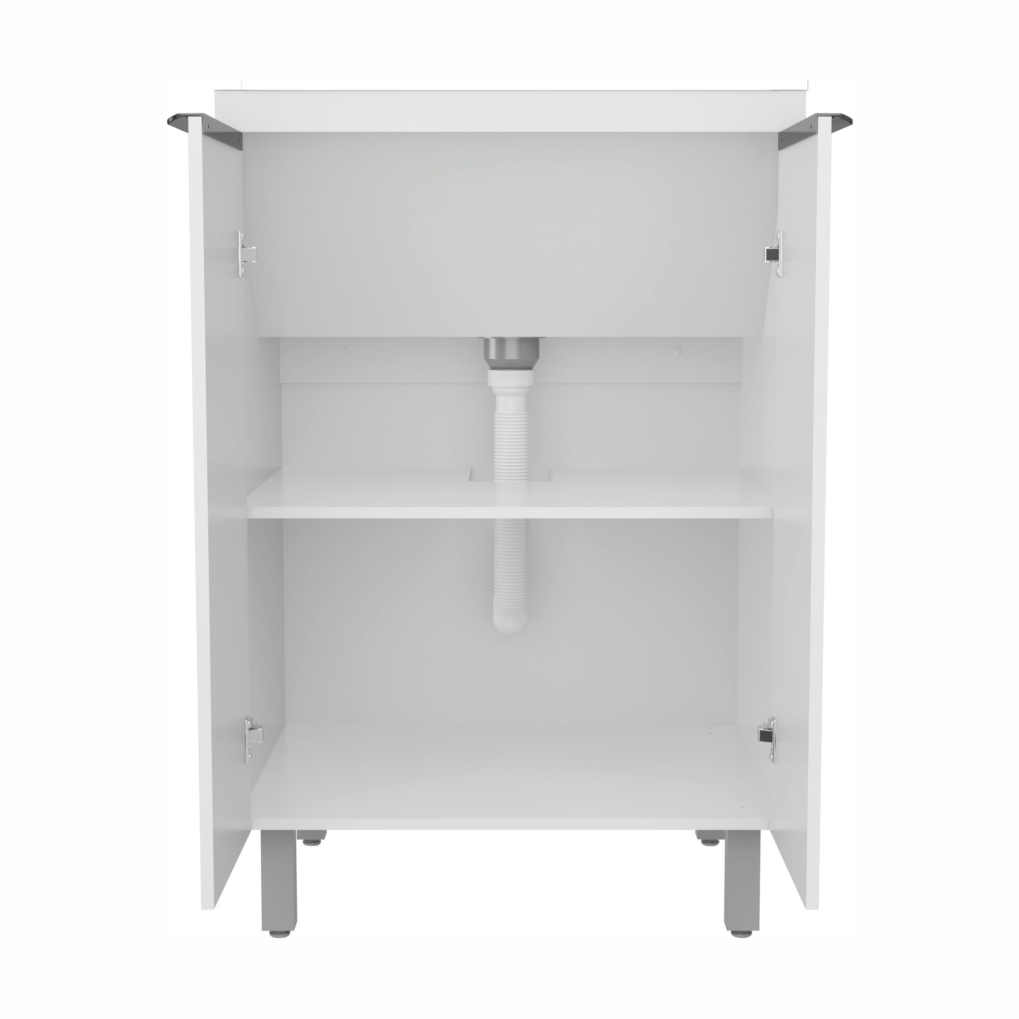 PRATELEIRA INTELIGENTE: Para otimizar o espaço interno, foi desenvolvida prateleira ampla, com mais espaço para armazenar e organizar produtos de limpeza. Considerando a instalação do produto a prateleira conta com encaixe inteligente, sendo projetada de forma que permite o encaixe perfeito do sifão.