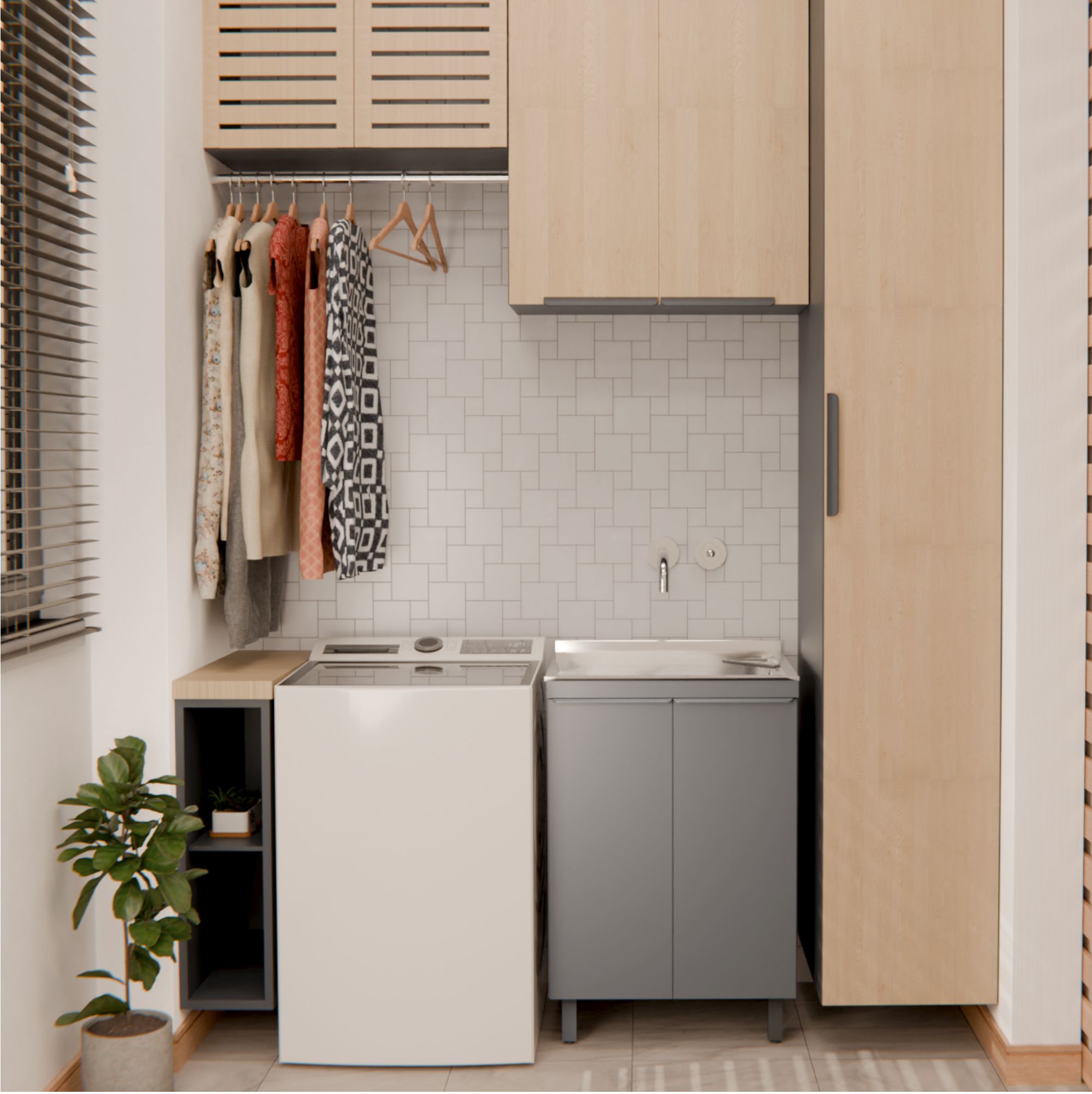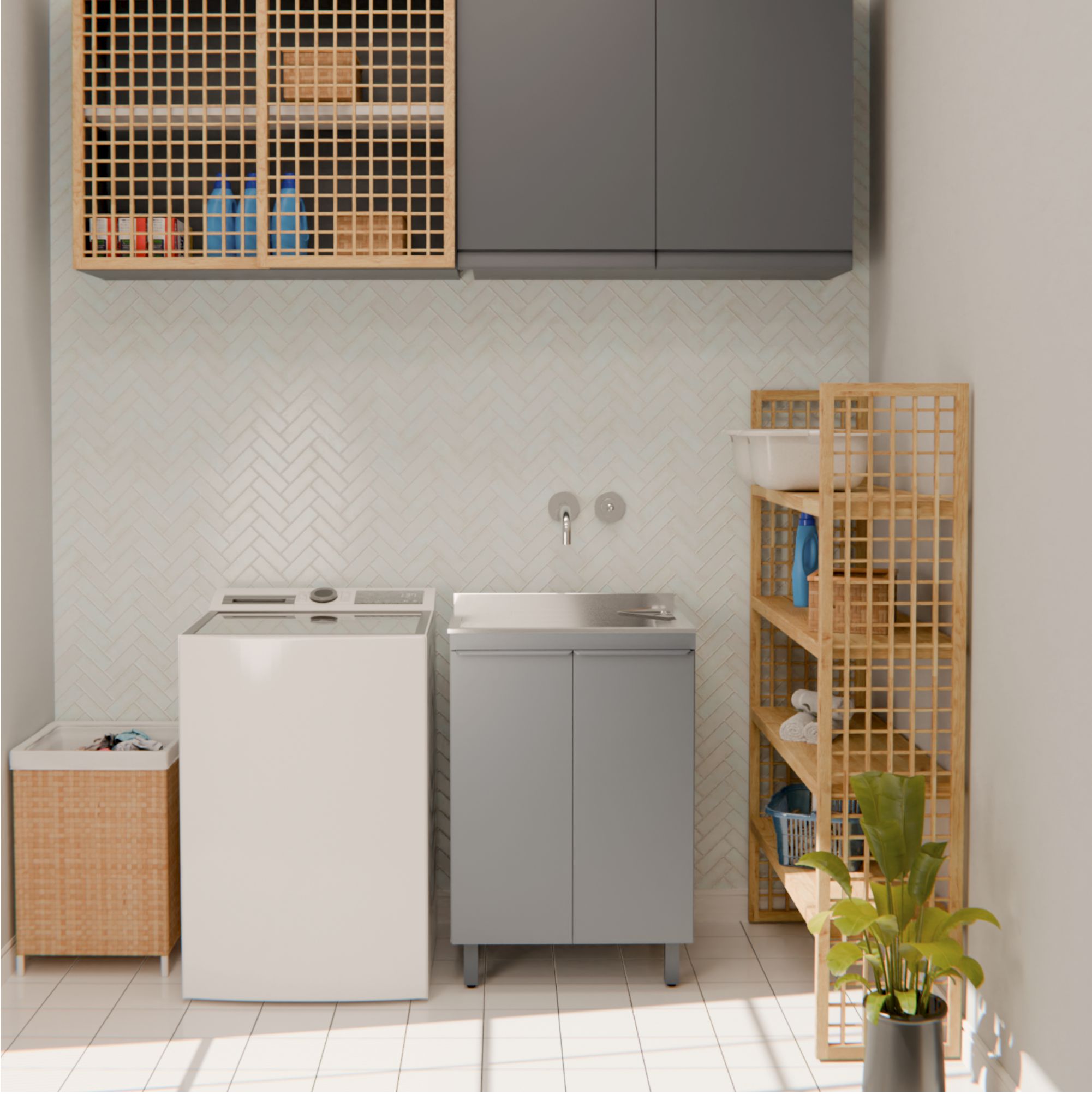 O KIT LAVANDERIA 500, além de embelezar sua lavanderia, irá proporcionar mais praticidade e facilidade em guardar e organizar produtos e materiais de limpeza.