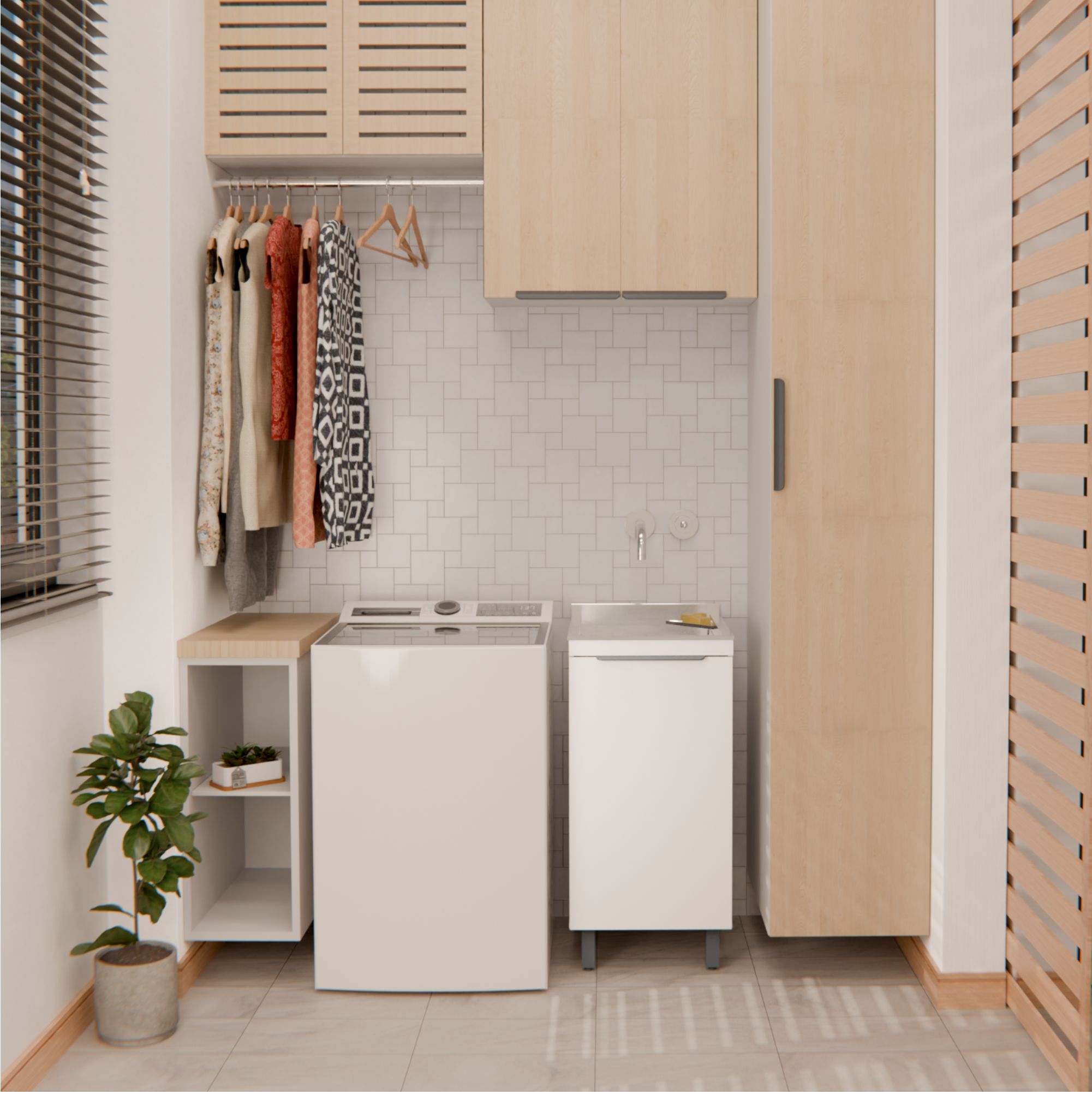 Através de avançadas pesquisas, O KIT LAVANDERIA MINI foi desenvolvido com medidas ergonômicas, pensado para lavanderias pequenas ou próximas à cozinha, ideal para apartamentos menores ou quitinetes. Com design moderno e clean, adapta-se facilmente ao ambiente.