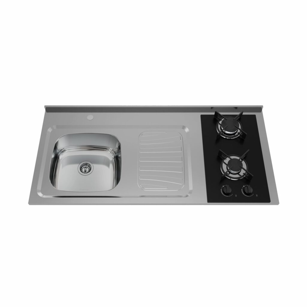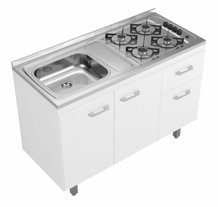 Fogão pia com 4 queimadores e balcão, que pode ser adquirido separadamente – GhelPlus